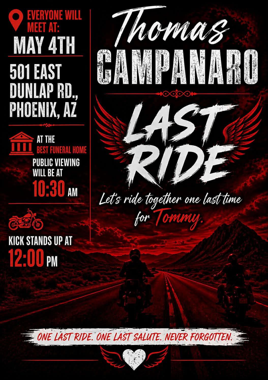 Outsiders MC Car and Bike Show Saturday, May 2nd, 2026 from 10am - 3pm Cars and bike in the show can roll in at 8am Contact for car/bike registration Matt Fizzell 602-527-0482 Pre-Registration $25 - Day of Show $30 Contact for Pin-Up contestants PM Keena Fizzell/Lilly Rebel Entry fee $25 […]