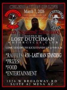 Next Meeting: Saturday, March 28th at Hooligans MC Clubhouse – 2663 W Lone Cactus Drive, Phoenix at 11:00am
