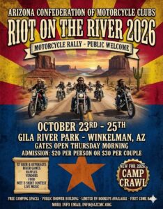 This is the ONLY EVENT the ACMC hosts to raise money for OUR CONFEDERATION! This is our annual event that supports the causes of the Arizona Confederation of Motorcycle Clubs as well as the rights of ALL Riders. Thank you, hope to see you there!