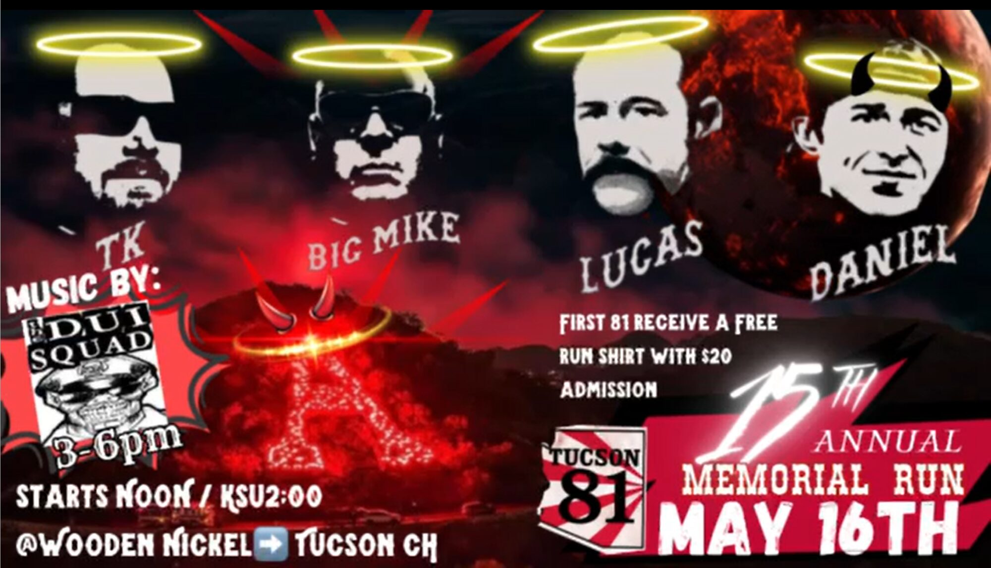 Next Meeting: Saturday, April 25th at Hells Angels MC Tucson – 2819 South 12th Avenue, Tucson at 11:00am